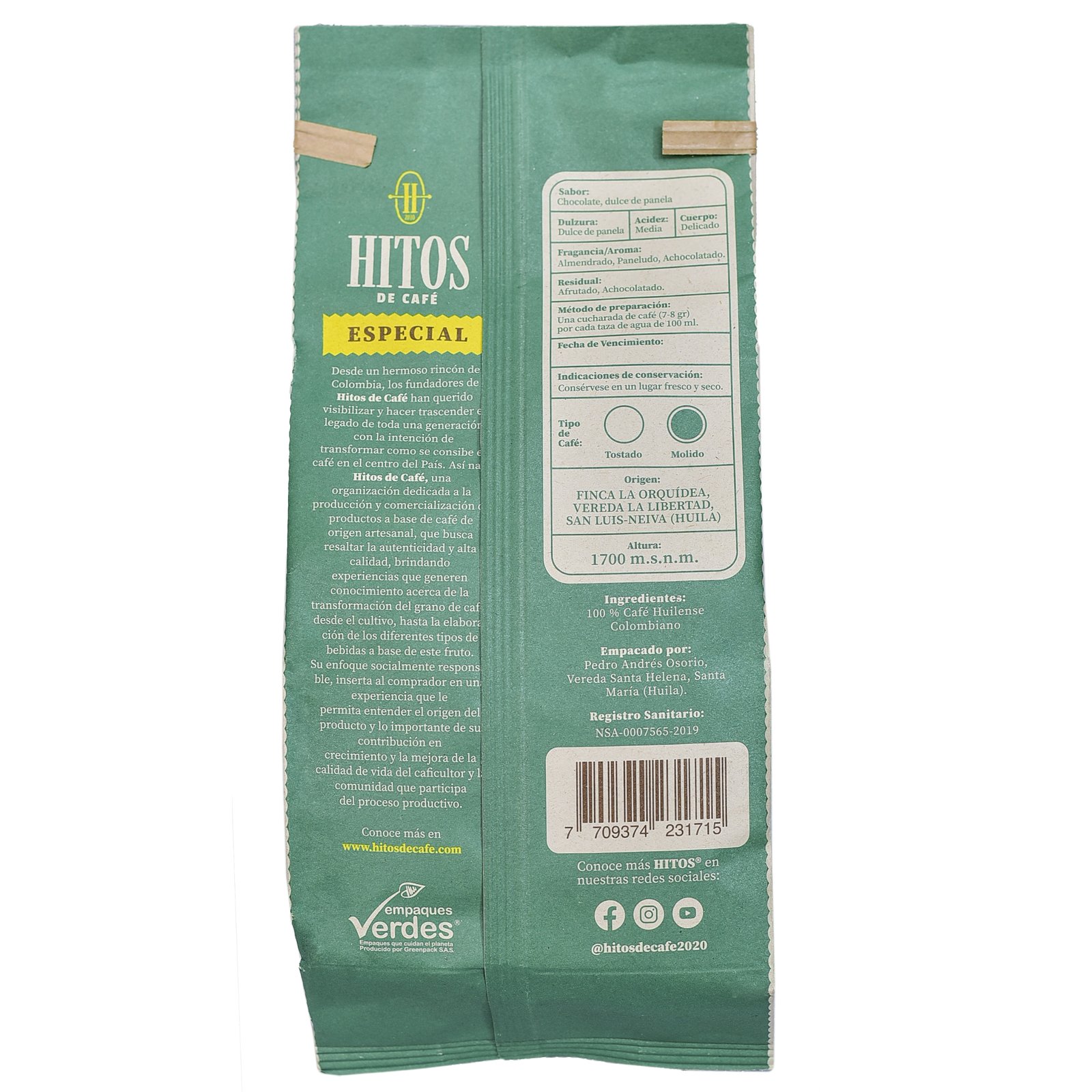 Un café especial Hitos de Café cuenta con notas de sabor a chocolate y dulce de panela. Presenta una acidez media, cuerpo delicado y un aroma almendrado, paneludo y achocolatado.