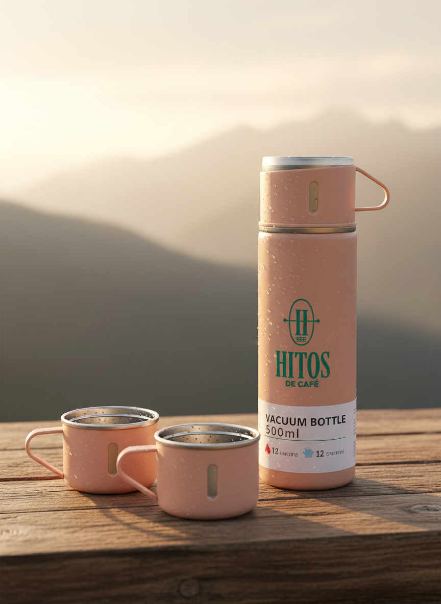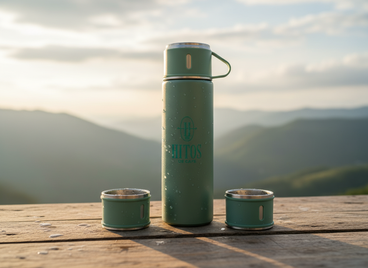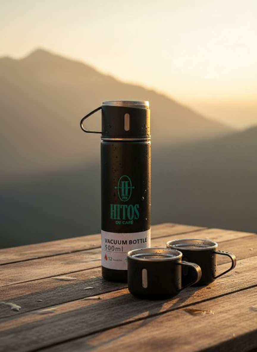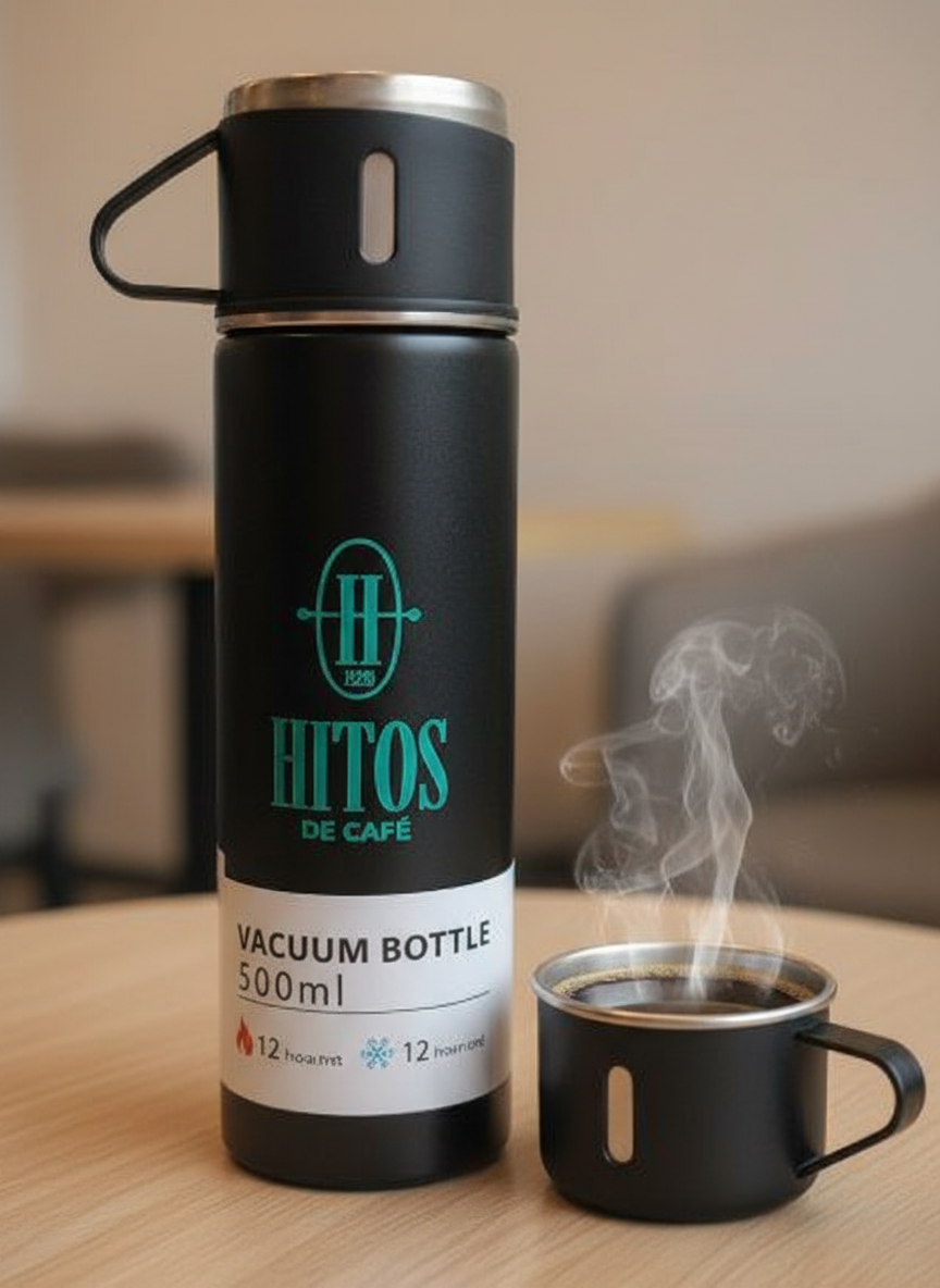 Disfruta de tu café favorito en cualquier lugar con el termo Hitos de Café, diseñado para un estilo de vida activo. Su diseño elegante y funcional lo hace indispensable para la oficina, viajes o hogar.