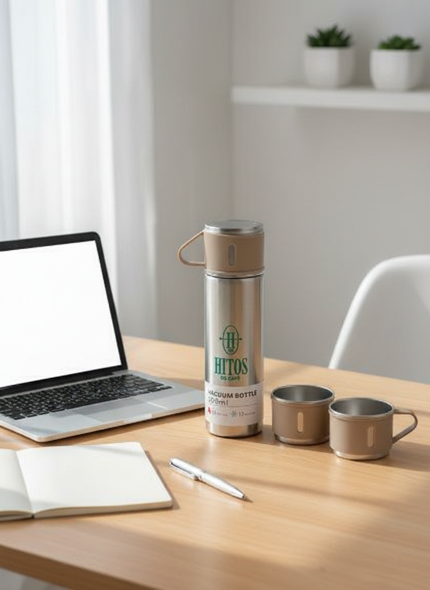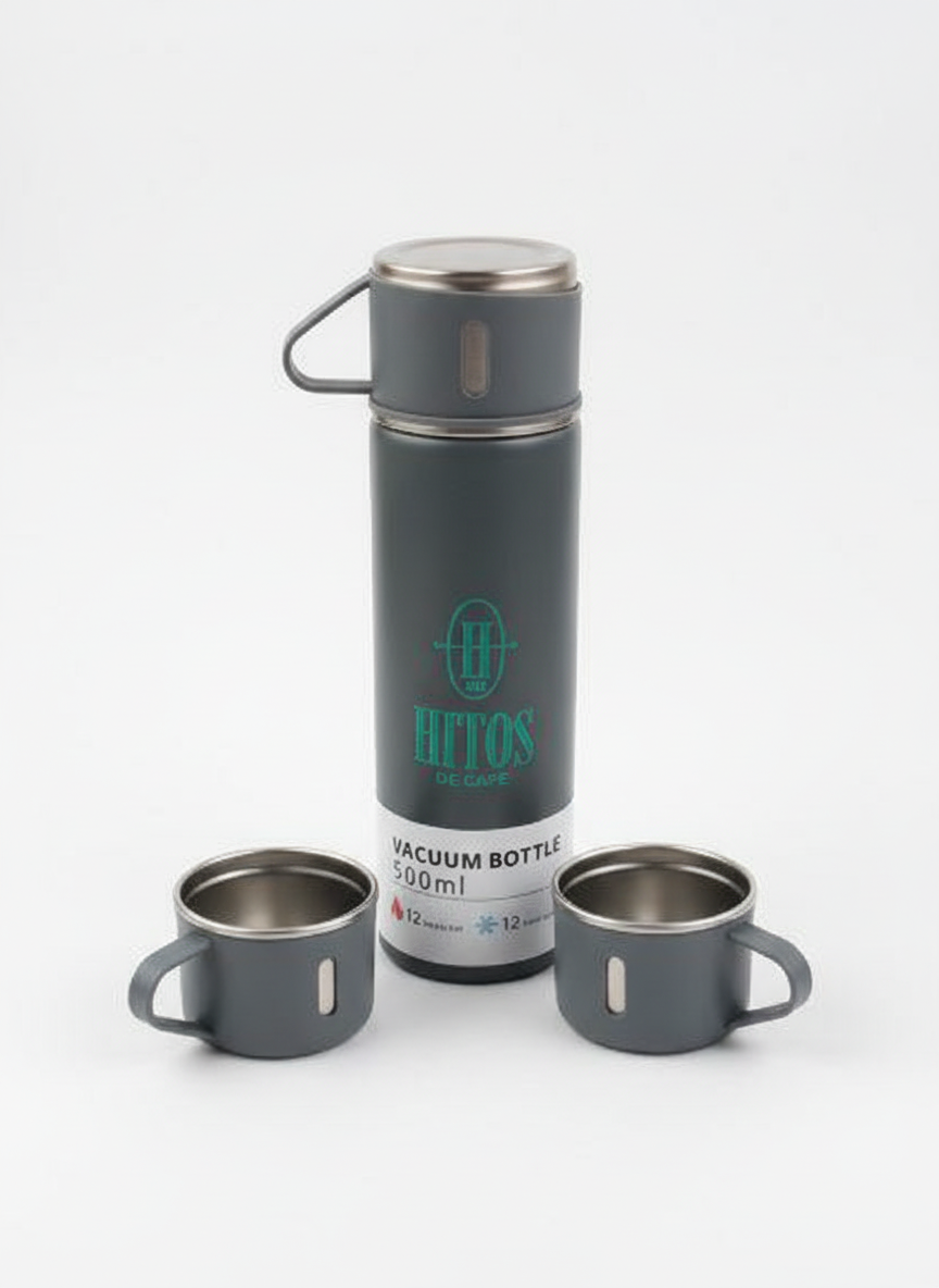 El termo Hitos de Café de 500 ml mantiene tus bebidas calientes o frías por horas, ideal para tu día a día. Incluye tres tazas prácticas que sirven como vasos de servicio, perfectas para compartir con amigos o familia.